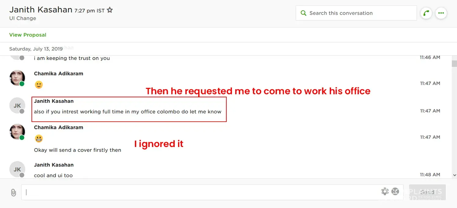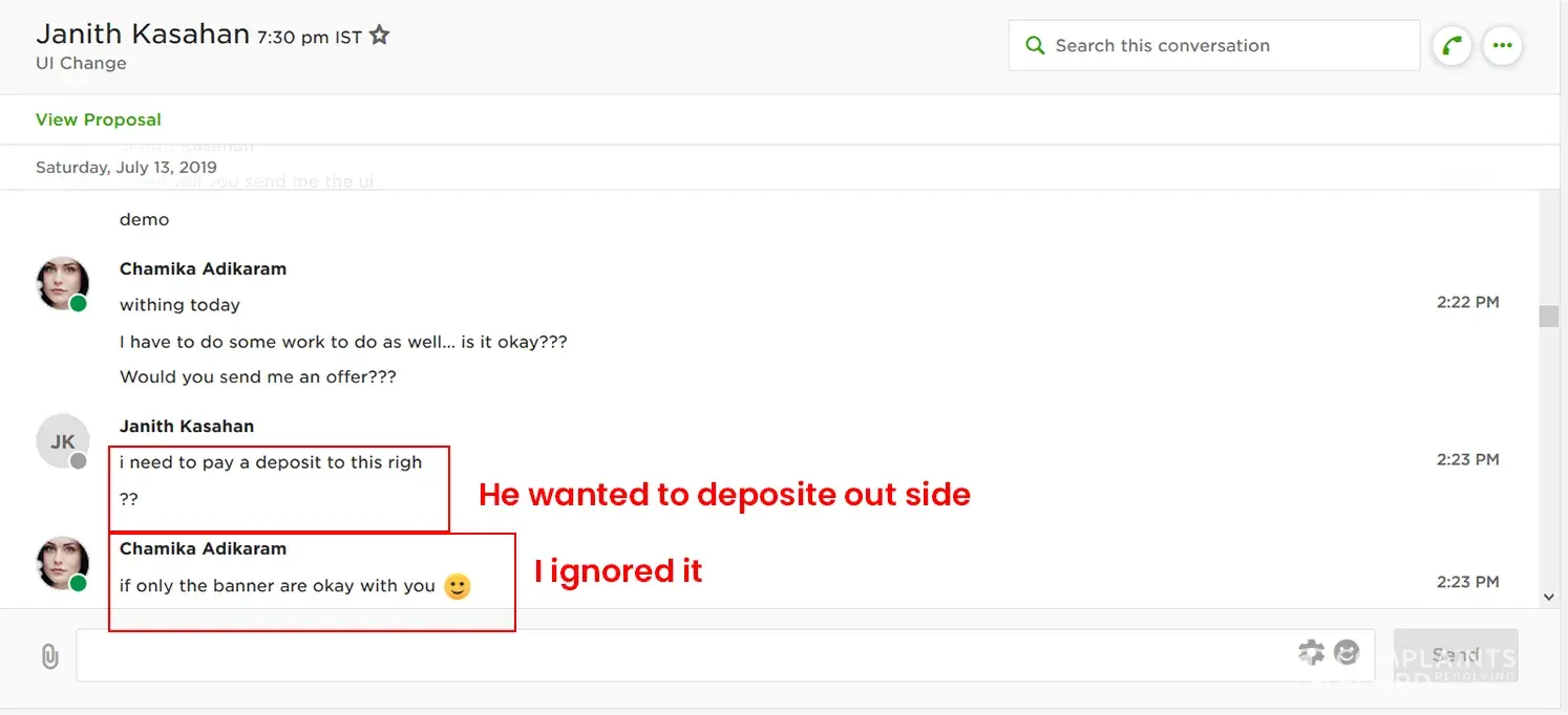 after that, I complained to the upwork about this issue and you guys suspended my worth account. I am a fresher to upwork and I beg you just kindly refer this matter and give my account back to me. I never ever beg this much if I did this purposely. But this is not my fault. That is why this much begging. I have attached all the screenshots regarding this issue. I am now in suicide mood. I cant earn at least 1 dollar. Even there is no chance to create any other account as well. My designs became just worthless for you guys. Why suspended my account because of another client.