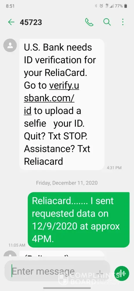 I have been fighting to get my Oregon unemployment insurance money form us bank reliacard since august this year untill now. i was told to fax a copy of my oregon id card that is enlarged and a copy of my utility bill with my address on it . i have faxed the required documents over and over again. i have kept copies of conformation of my texts getting there to thier fax number, [protected]. they still will not activate my relia card. i have $1, 510 dollars that they will not give me. im also filing a complaint with the better business bureau.