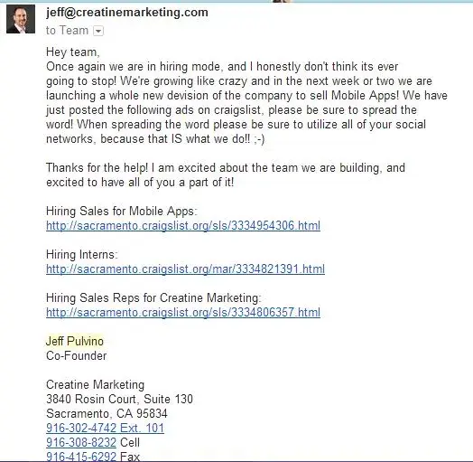 I just want you all to know that Jeff Pulvino and Shane Barker set up Creatine Marketing http://creatinemarketing.com, from 2010 onwards but both men aren't publicly listed anywhere on the website or business license. Daniel Fleetwood, former Vice President of Sales at US Loan Auditors, is listed on the company's Nevada business license.