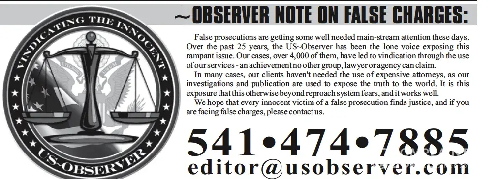 Again, the US Observer prides itself on helping those who need it most - the falsely accused. In a ironic twist, we find ourselves being falsely accused.