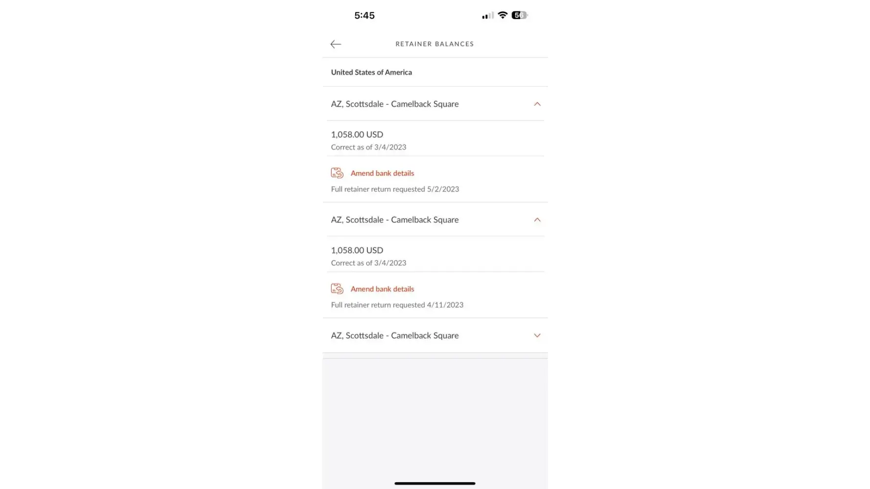 It’s been over two months and they still have not returned me my $1,058.00 retainer fee after multiple requests through the Regus App and calls to their customer service department.