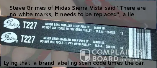 need to replace it.” A lie implying that the brand labeling scan code times the car.Complained to AZ AG BBB and his reply was in