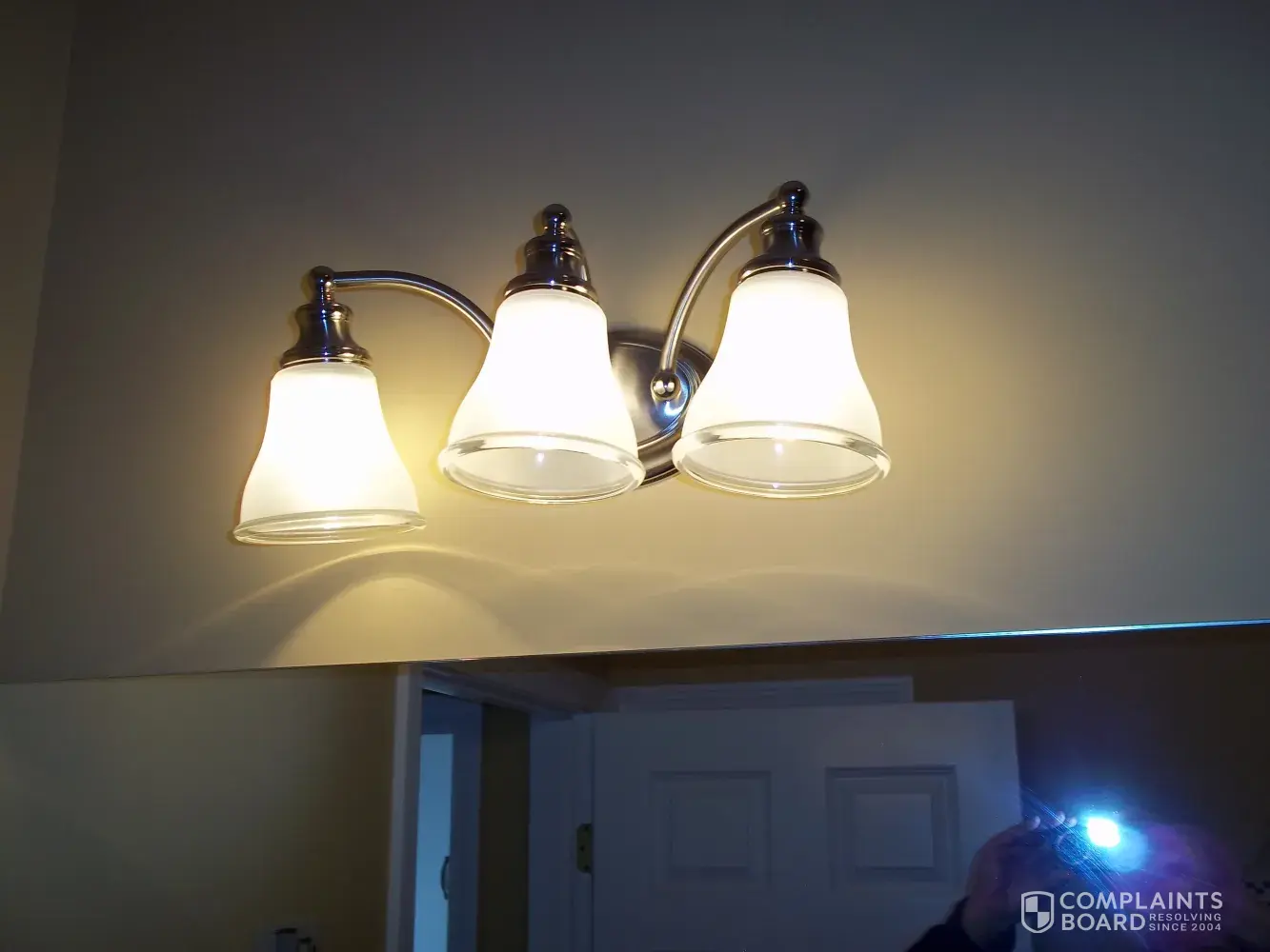 A wall light fixture was rotated to enable them to paint behind it, they didn't rotate it back straight before the customer pointed it out and to this day calls it a broken light.