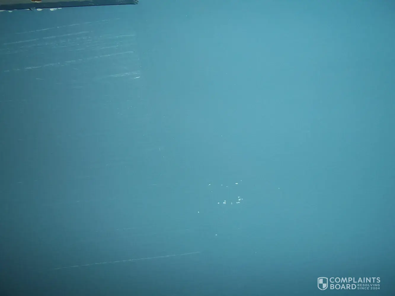 We have been through this with him numerous times; he's complained to BBB (case closed by BBB they said we made reasonable effort to satisfy him); filed a complaint with CT dept consumer protection (our licensing authority) and they've ignored it; I think I even got a lawyer letter on it. I've visited and met with him; my service mgr has done the same thing twice I believe. We've offered apologies, etc. I've offered to waive the balance owed ($200), paint the remaining area, paint the additional room he says has a holiday, and pay for a cleaning service to come through after we leave, along with numerous other offers we've batted around. I'm pretty sure that even if we gave him a full refund (which I am not offering), or even a double refund, he'd still continue to badmouth us wherever he can. Each time it comes up, his complaint grows 'my 80 yr old wife was on her hands and bloody knees cleaning up your mess'. Now there are photos that seem to show pictures of damage that didn't exist when we inspected last year.