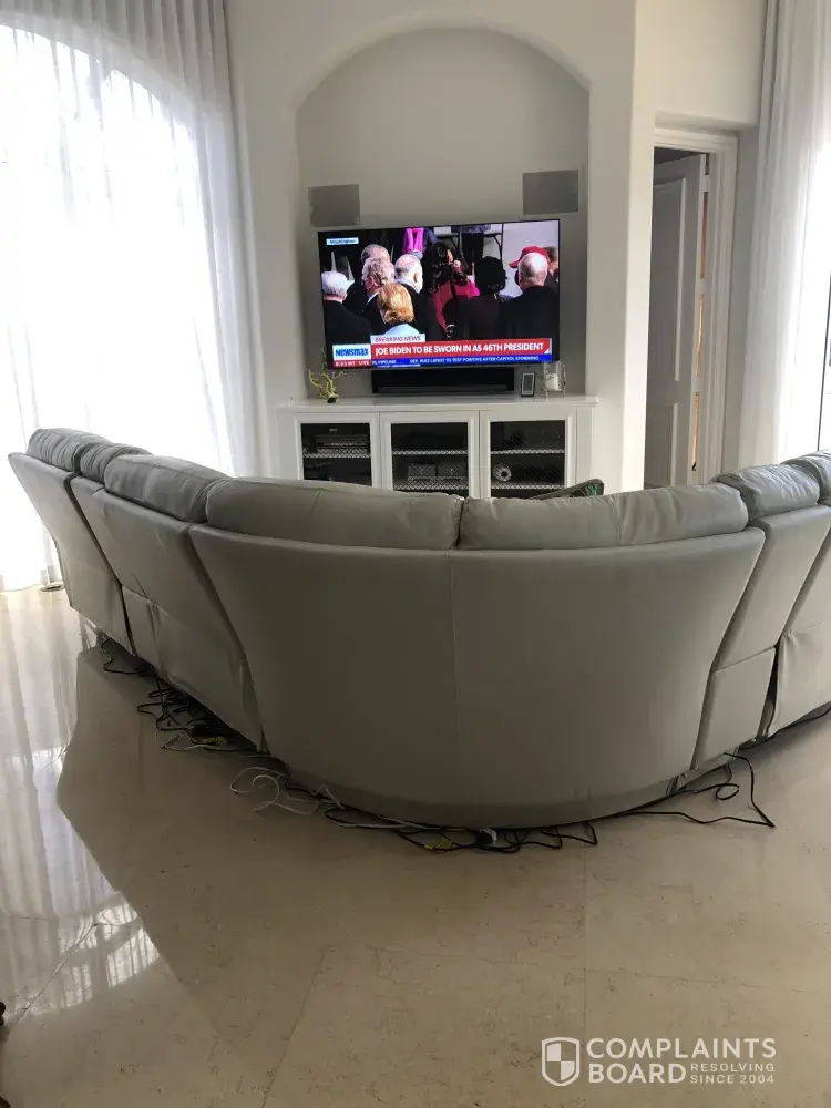 A six piece sectional sofa was delivered to our house. We were not told that this sofa was not designed to be floating in the middle of a room. It is designed only to be against solid walls. The cables are all sticking out. They cannot be hidden underneath. It's the biggest electrical mess. There are six electric cables one for each piece. City Furniture is not willing to take the sofa back. We do not want it. It will not work in our room.