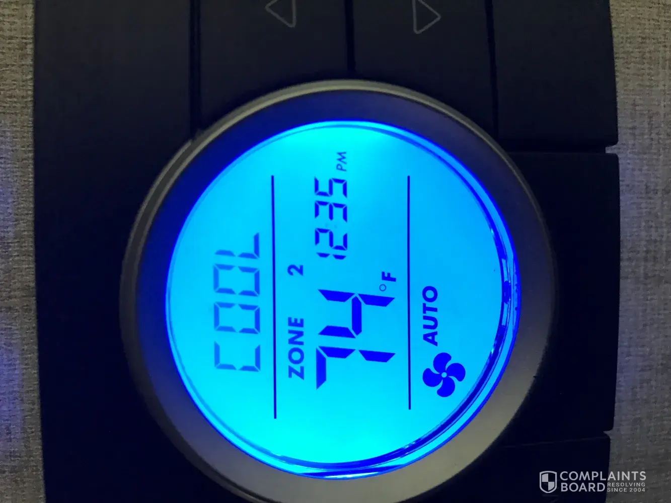 I recently purchased this unit on May 3, 2019 brand new and I have had a series of problems from the time of purchase. I have called the service department (Justin), Tabitha and also the service tech Gary White ( a great person). I have the following issue which have NOT been taking care of and the blame game goes from Forest River to Camping World. The issues are: AC units (two 15 KW) does not cool the RV because of Cool Air vs Return Air is not balanced. Thermostat is in the hallway and exposed to the element (sun) all day long. I used 1440 KW for the month of May. Toilet valve is bad, floor has approx 8" cut in vinyl, window shades coming apart, Fantastic Fan arm bent, leaking bathroom sink faucet, under pan of RV large hole and only taped, slide moldings underneath coming apart, screws missing on slides, Recliners have staples coming through. Not enough room for the rest but I have had many visits to Camping World and Forest River (Todd Sorrell, Judd Cripes (both have tried to get things done) but have not had any resolve. Please help us because we are displaced because the temp inside ranges from 80-87 deg with the temp set at 74 deg. We have three fans running at one time to try and maintain comfort. Thank you for your assistance.
