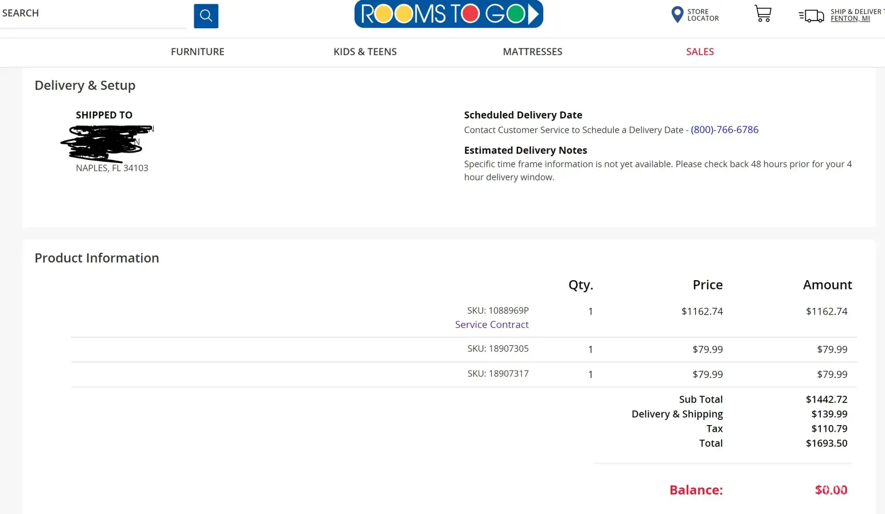 On 10/25 I ordered the Cindy Crawford Metropolis sectional right arm facing chaise. I understood the delay due to covid and made arrangements to fly down to my condo in Naples to accept the arrival of my furniture. The truck was timely on December 29th. However, the main piece of the couch came damaged. The delivery drivers wanted to bring the piece up anyway because the other 2 pieces were in my condo. The couch was torn and had oil across the front base. I asked them at the time to take the other 2 pieces back and they would not take them back down to the truck due to being short manned and having to go to the next stop. They assured me I would not have to wait for the new couch to come. I immediately called the store who sent me to customer care - I waited 3 hours on hold before finally testing with a chat person who was not apologetic, she offered 50$ for the lost time which was never credited and gave me a new date of Feb 8th. On Feb 8th I arranged for a paid home sitter to come to await the arrival. The drivers this time stated that the couch could not fit up the stairs or the elevator. Yet the first group of drivers wanted to bring it up and had it up the first flight of stairs. I have called 15 times to customer care, I called the store and spoke to Andy who sold me the couch and he stated he would have a manager call me back - I have yet to receive a call - I have no couch and I have contacted customer service to speak to a person and have held on 4 occasions for greater than 2 hours. Andy told me that because the couches were in my home that I could not make a return - this is not what I was told by customer service on Jan 1st when I was afraid the color would not be available. Because the truck pulled away - I called 2 minutes after they left - I was told I now have to wait again (supposedly for a piece of furniture they drove away with, that the second group of men) could not get up the stairs? My customer order number is [protected] I am back in Florida to seek a resolution. Customer support stated that they know that they are bad service but this is because of covid and they are short-staffed and working remotely. Courtesy and handling customers politely who are spending money during this time are not something that should be "covid" dependent. Following up and handling a situation and treating a customer with dignity is not covid dependent.