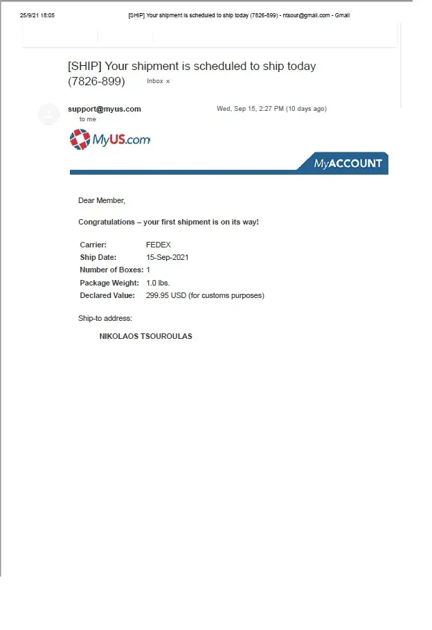 MyUS.com / Access USA Shipping reviews and complaints 7