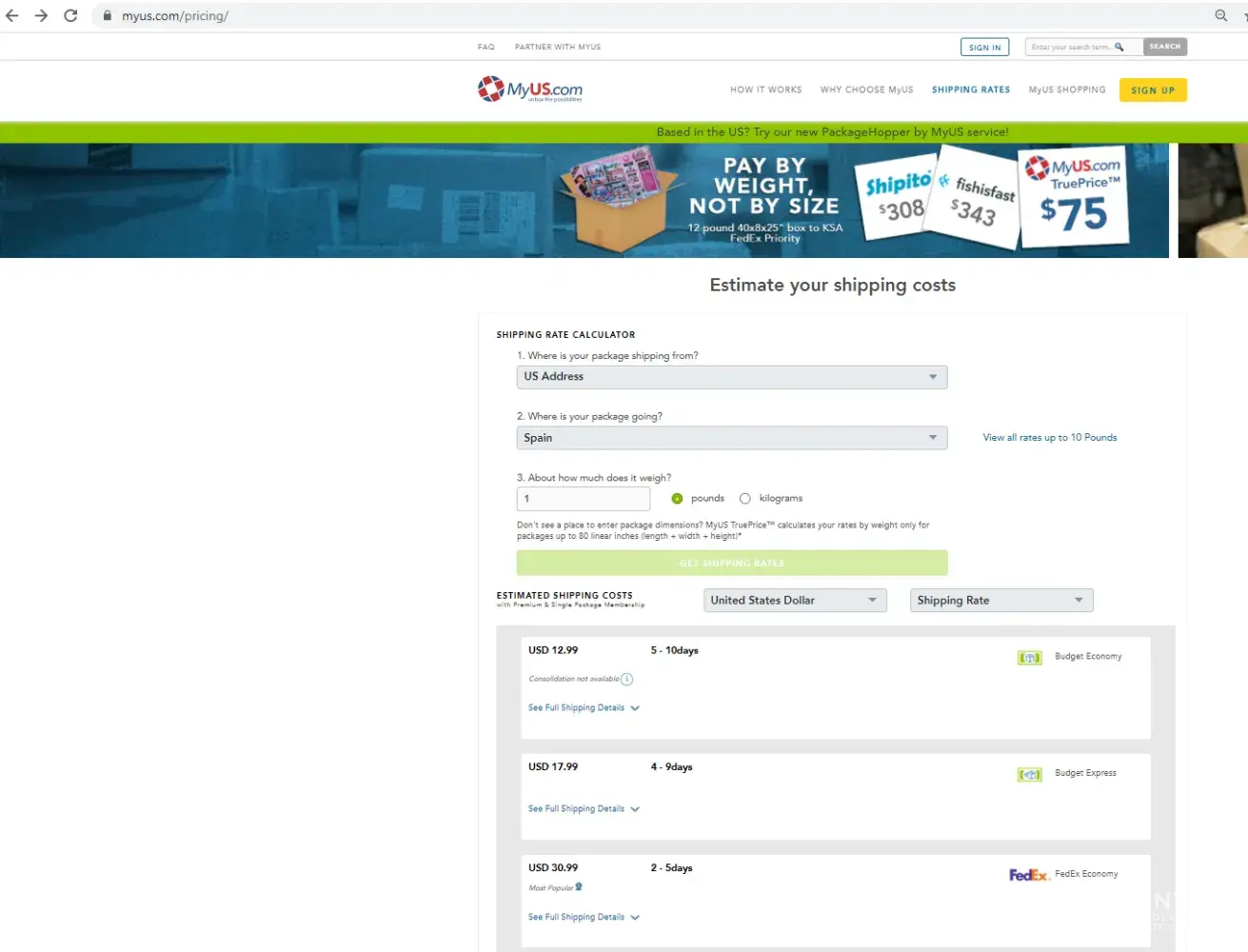 I contracted their service because I was given a replacement Bluetooth headphone-set from a manufacturer to replace a broken one. Before contracting the service, I used their shipping calculator that gave me an estimate of 33USD for FedEx Economy. See Exhibit #1.