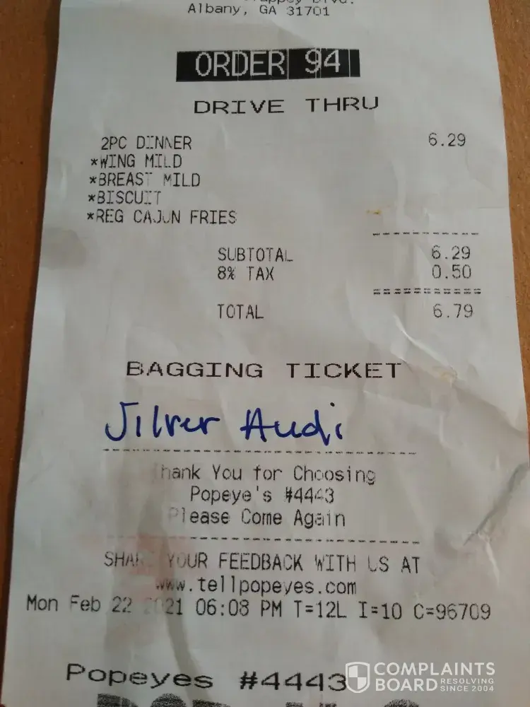 Popeyes reviews and complaints 2
