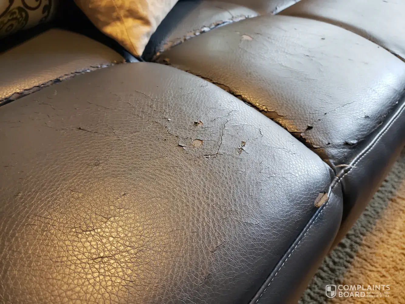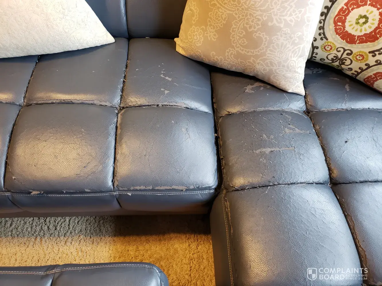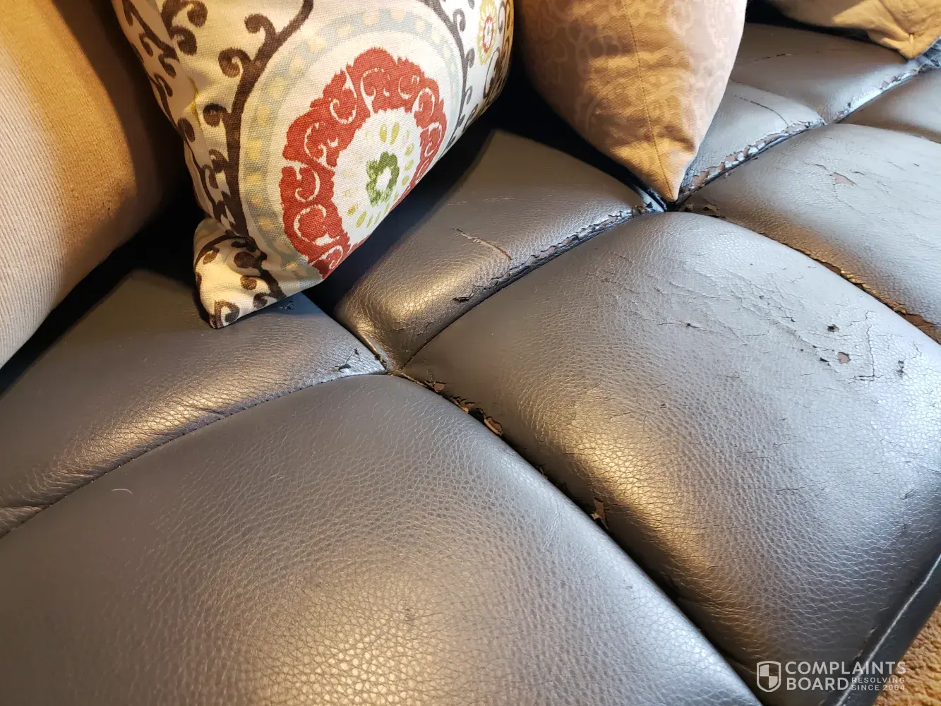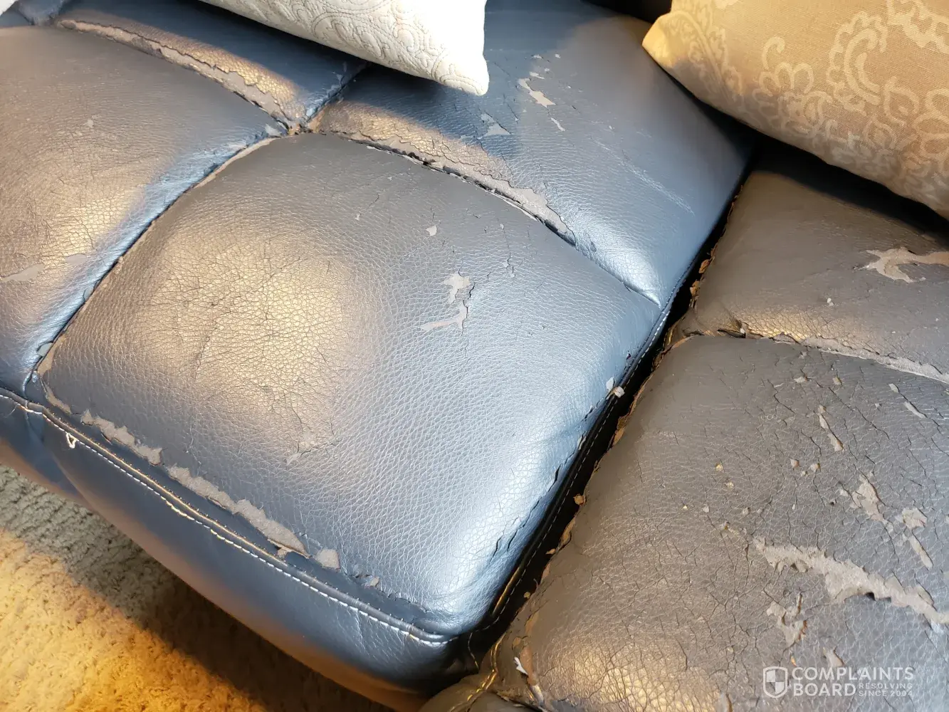 This sofa was very rarely used as it was in our rec room so there is no reason this should have happened except due to manufacturer defect. We also purchased barstools at the same time which all have experienced the peeling as well.