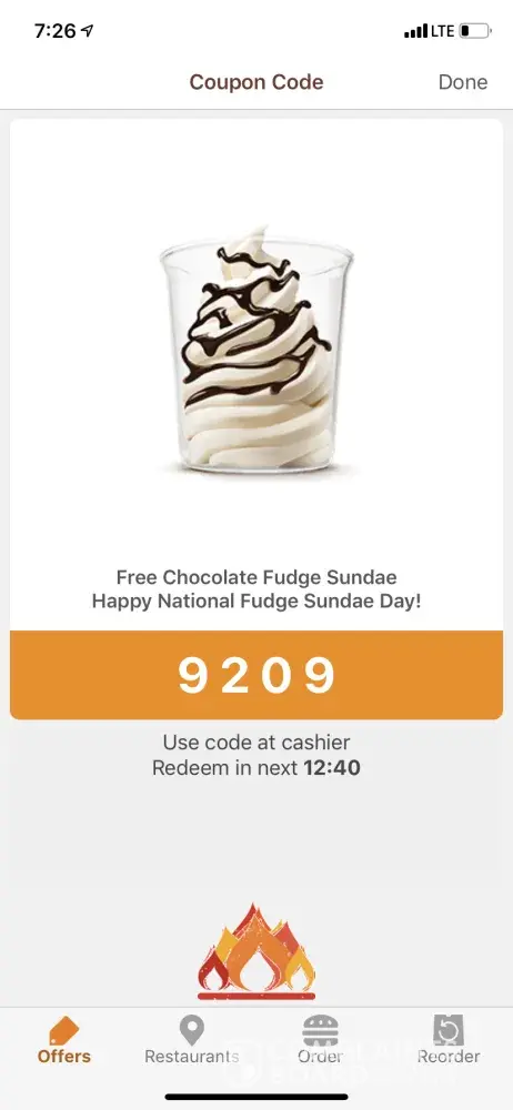 Today I went through BK, I always check the mobile app for deals. Today there was a coupon for a free ice cream sundae for "National Ice cream Sundae Day".
