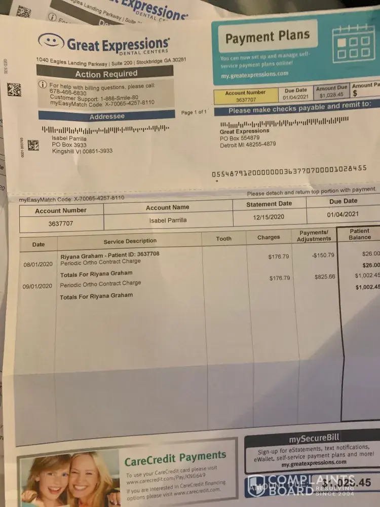 Great Expressions Dental Centers - Payment customer billing - no answers and inaccurate
