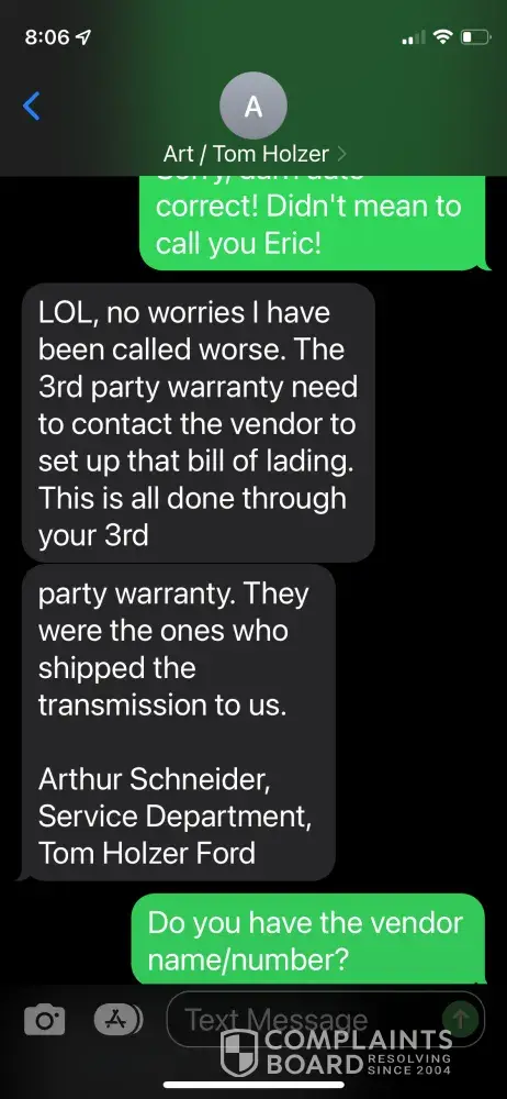 Desired outcome: Warn as many people as possible about this company and get my vehicle repairs paid for.