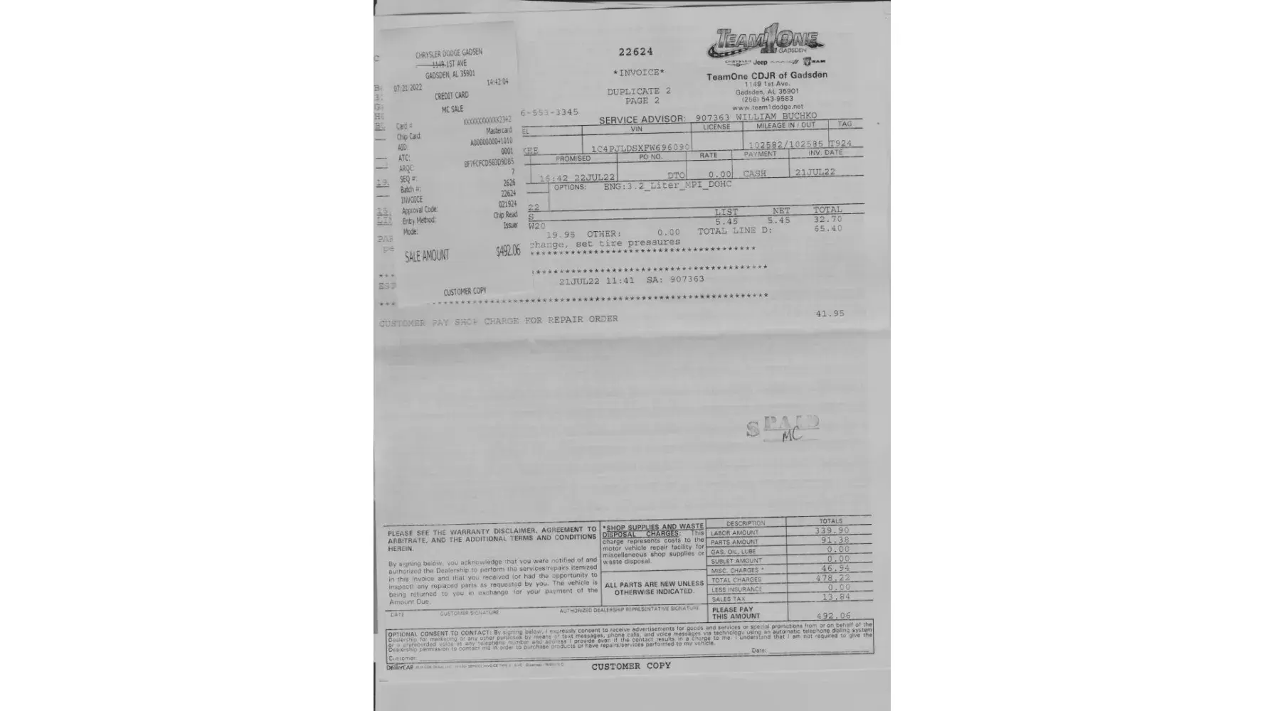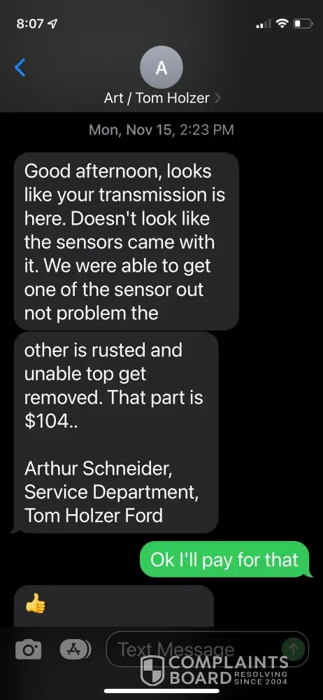 Pictures of the texts with my service adviser are enclosed.
