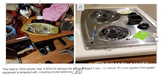 Woodspring suites posting photos from inside your room of your personal belongings without consent is against the law. Their response needs to be removed.