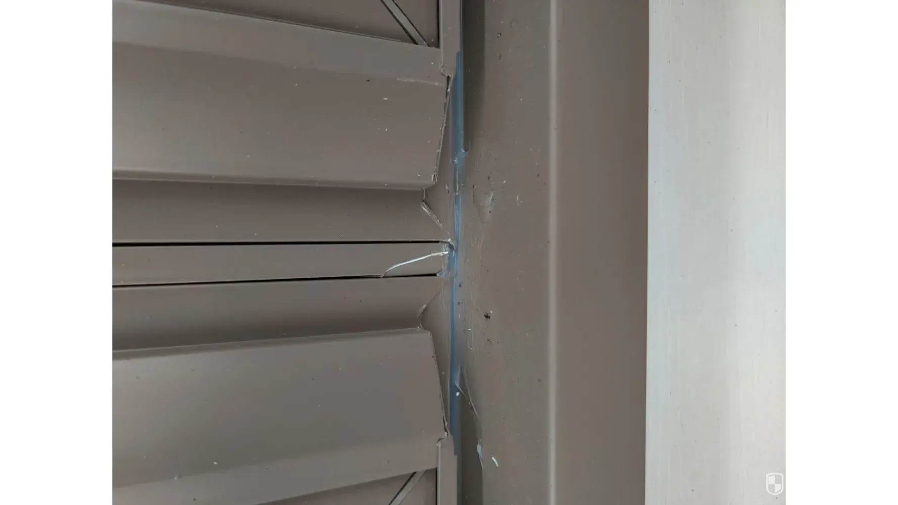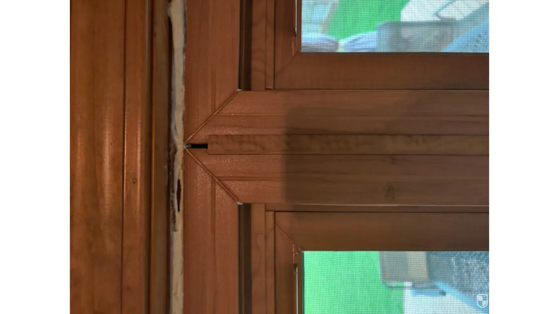 4 - I don't know what the piece is called, but between 2 large windows in 1 big opening there is a piece that was installed too low. Doesn't cover the top of the portion between the 2 and is so long at the bottom it doesn't sit correctly. On the outside of this same piece, it is cracked.