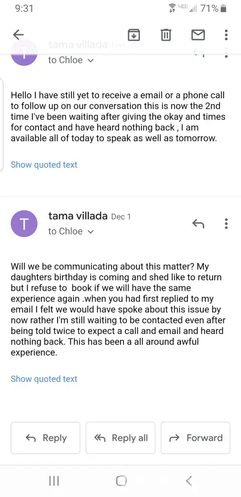 On our recent stay for my sons 4th birthday I had requested a quite room since he is autistic with sensory issues this was our 5th stay in a year span and always request this. Upon check in our room was directly overlooking the main lobby where you can hear all coming in and the music and activities until about 10 pm every night I asked to switch rooms was told there is no other available. I purchased 3 passes for my children all of wich include arcade points went to redeem the points as well as add a 5$ upcharge to each went to use the cards and they had not points available I went to the desk to let them know there must have been a error and was told they can not help up and re issue points since it was crossed off their passes already. Our chairs were taken from our table in the water park so my children had to eat standing and then our refillable cups and pizza we bought to being to the room were also taken while taking my son to the bathroom. When I spoke to the main desk I was told there was no manager so speak to and pushed aside while they called the next guest up! I filed a complaint about the stay with chloe the supervisor was told shed contact me 2 times to discuss the issues and never did and has no ignored all emails very unprofessional I will not be returning
