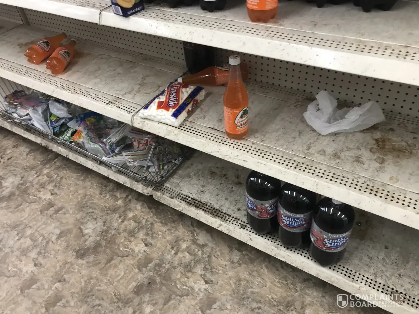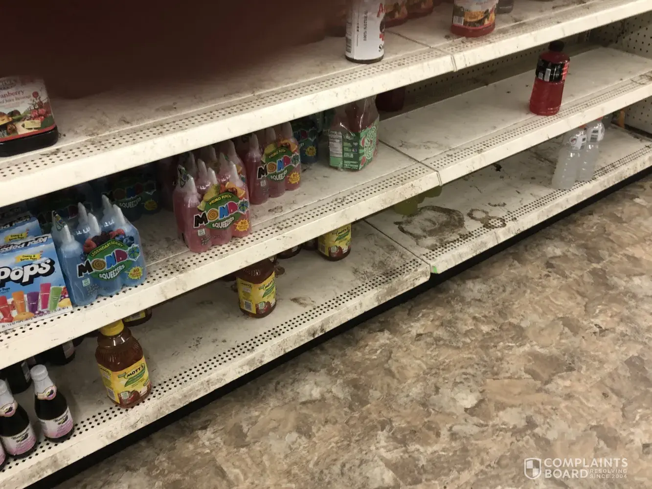 I went in the store and the place is a mess and the shelf's are nasty they have mud caked on it is very disgusting if you don't do anything about it I will report it to the bbb they will take care of it you have food their and it's a health issue you need to train your employees how to clean it's like that a mess in almost every store you go in. Its not far to the customers come in and see this