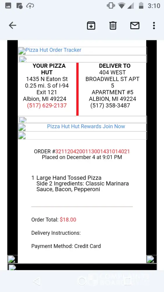 View all 2960 complaintsPizza Hut - Ordered a pizza online never received it and I paid for it with my card