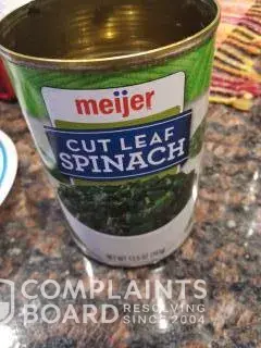 Desired outcome: I would like a full refund of a case of spinach and monetary compensation of potential consumption of a foreign object (wood like substance).