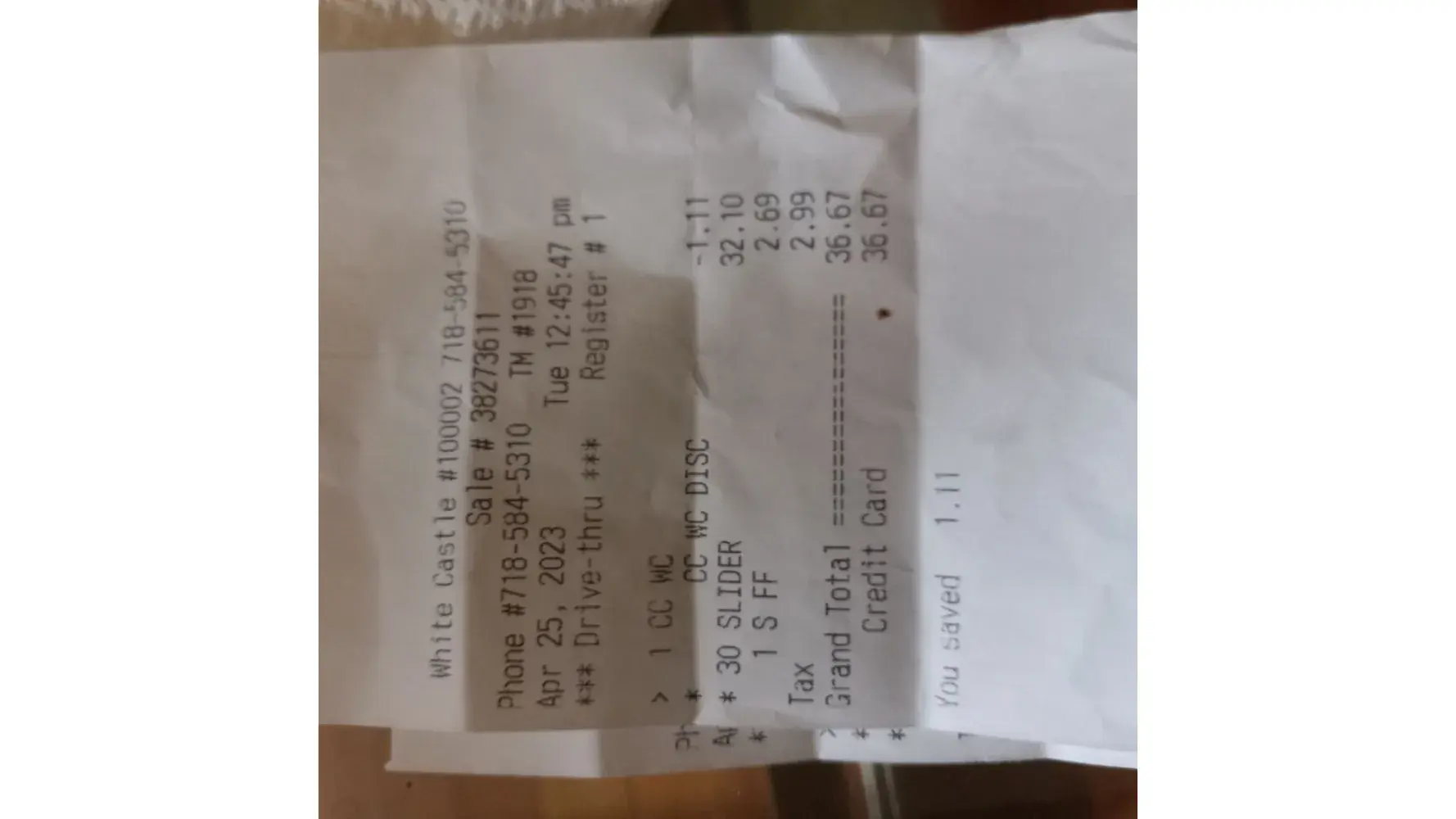 On june 28 at 446 pm i ordered slider shakes and a free with coupon small fry i was charged 2.69 for fries and a 1.69 taken off so they were not free this was at north bergen nj ticket sale no [protected] store no 090009