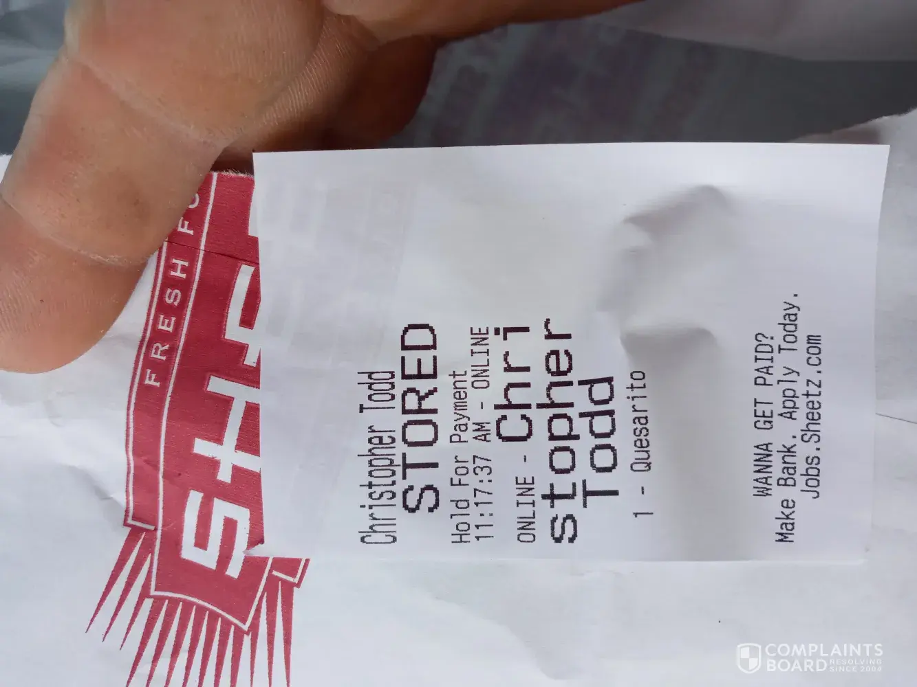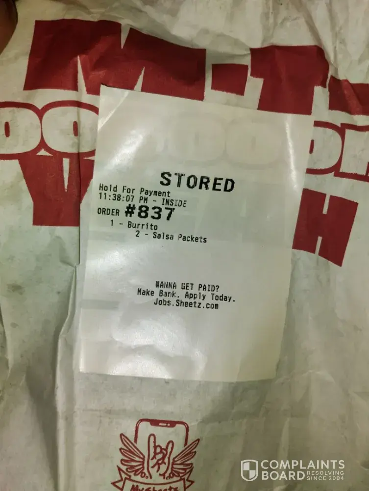 View all 1500 complaintsSheetz - MTO Food: Burrito