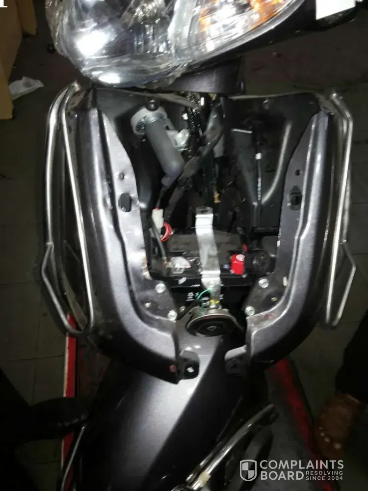 My name is Sagar Shah and i had purchased a Honda Activa 110cc on the special occasion of Dashera (8/10/2017) from an Authorized Dealer named- Morya Motors located in Kandivali (West).My engine number is ME4JF502JET344124 and number plate is MH02DR7598.During the time of Diwali i was out of town for a week just the day after coming from that trip i took my activa for my office and i noticed a sound coming from my front tire when a bumper or a kacha road comes i was shocked that how cum a noise can come from a vehicle which is not more than 15-20 days old? even i didnt used it much it was just 95kms used? So i went to the Dealer from where i purchased the vehicle..they told that my mudguard was not placed well soo they advised me to give the activa for it 1st service..just the next day i gave it to the Authorized Service Center located at Borivali (East) for servicing..the next day wen i went to take my activa they told that the parts under the front headlight were old and the left side corner under the headlight section is rusted..how cum a 15-20 days activa is rusted and is dented from the front? I didnt come accross any accident also soo how can it can be rusted? the Authorized manager told me that the dealer might have given me a Re-painted old activa..please take my complain into consideration and do fair with me...