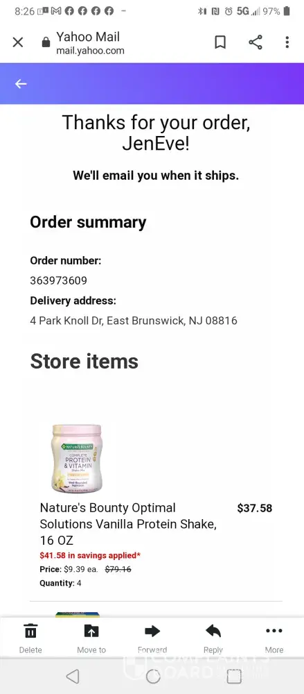 Desired outcome: Receipt of the balance of my order by mail or a voucher two receive the two items at my local CVS