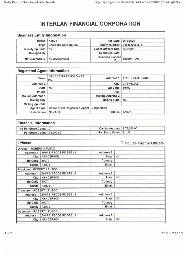 Business Name: INTERLAN FINANCIAL CORPORATION
