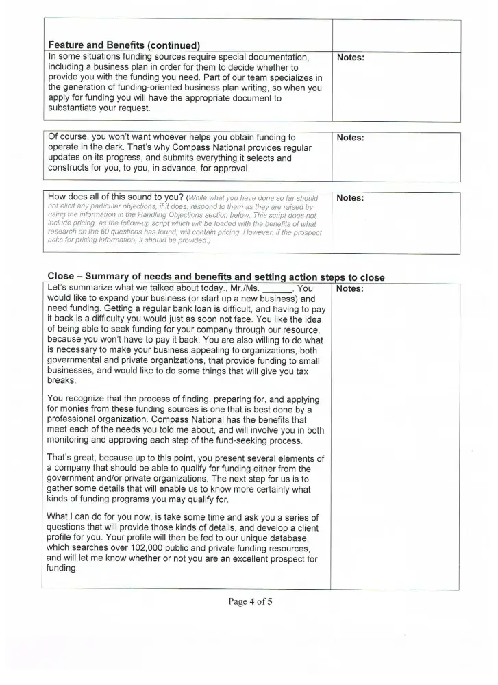 The call you over the phone and tell you if you pay them a fee and buy a business plan then they will help you get hundred and thousands of dollars in grant money. It is a lie. Ask the FBI they have not ever helped one company get a penny of funding.