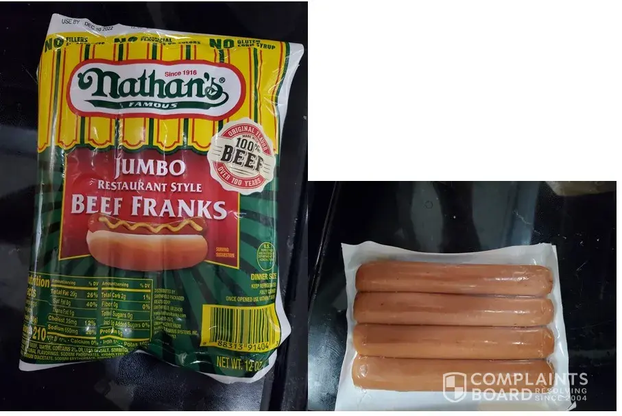 My husband brought home some Nathan's Beef franks our absolute fave, but, this time I bit into a bone and nearly broke my tooth.