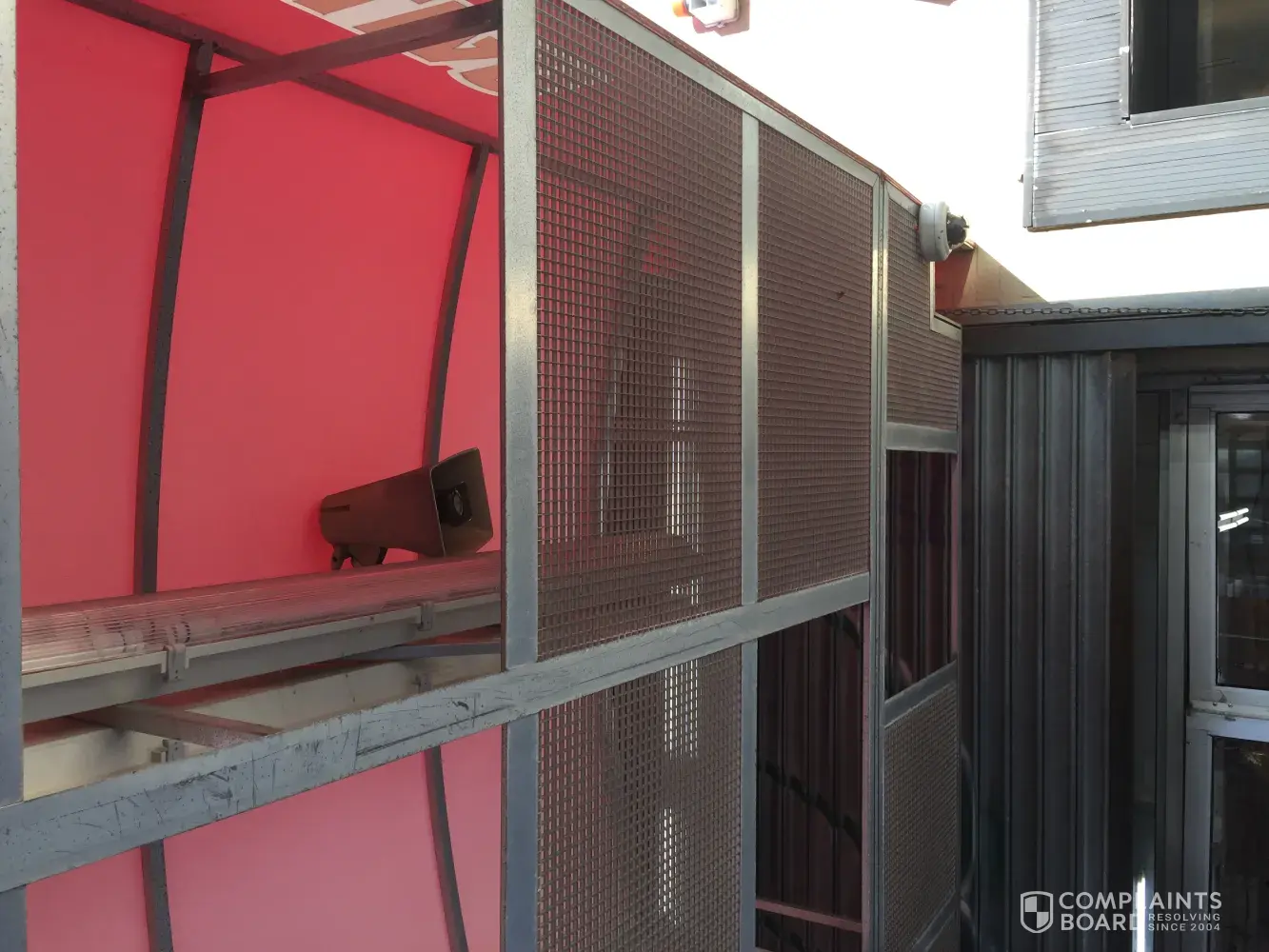 In addition, there is a hidden loudspeaker system installed OUTSIDE the store, in the awning. This loudspeaker blares security announcements into the neighborhood at 3 AM, 5 AM, 7 AM, in the evening and at various times during the day.