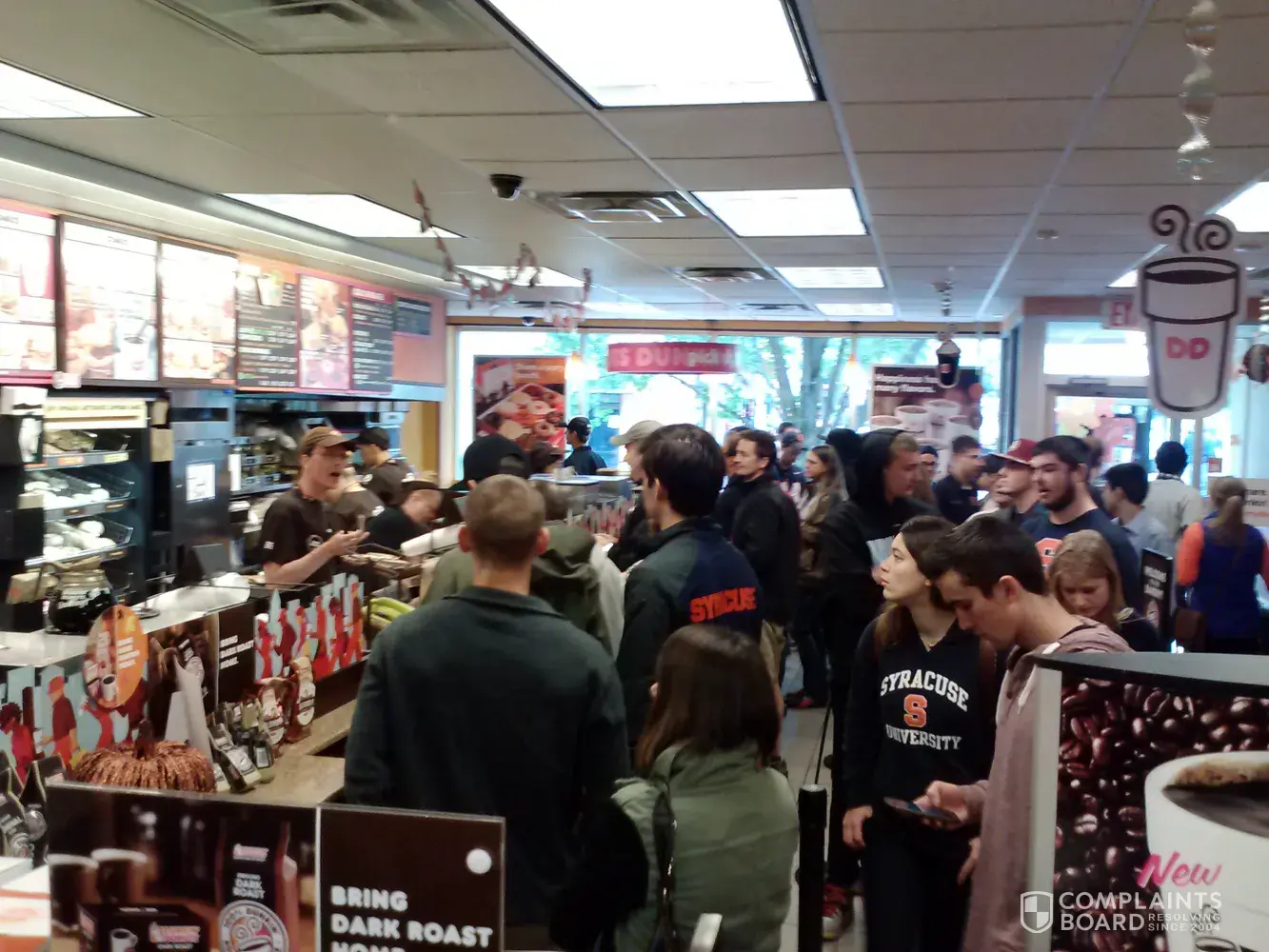 Today is saturday october 11, at 10:30 am.this store is located on syracuse univarsity campus, on saturdays there are always sport games that ate scheduled days an even months in advance.the store manager is never here on saturdays the stores most busy day of the week, the store manager never has enough staff to handle these types of crouds so the customers suffer poor poor service! the staff are always untrained young kids left with no proper leadership to run one of the most popular coffee house on the campus.the staff that works under the manager liz.try there hardest to serve the crowd they are left to deal with.not only is this totally unfair to the customers but its totally unfair to these young employes working for alot less than what that manger makes an they