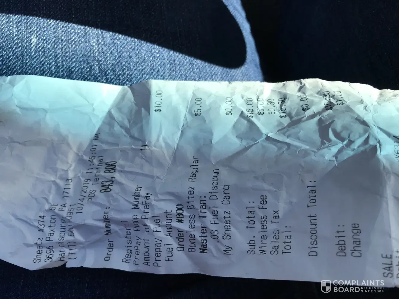 View all 1500 complaintsSheetz - Food, I did not recieve what i paid for