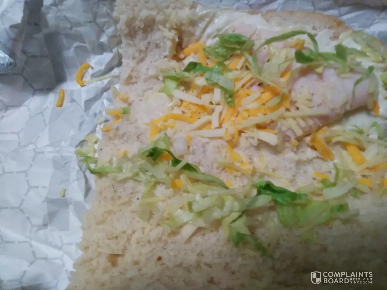 Here's the turkey sub I got, also if you pay for extras you never get it. Ha where is it! Terrible customer service.