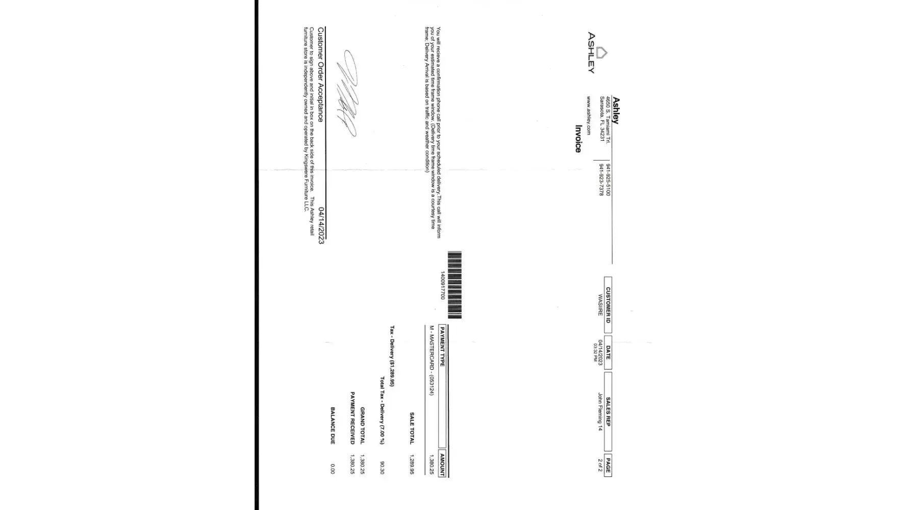 On April 14, 2023 we purchased some furniture from Ashley on sales order [protected], and you were the one that we were dealing with.