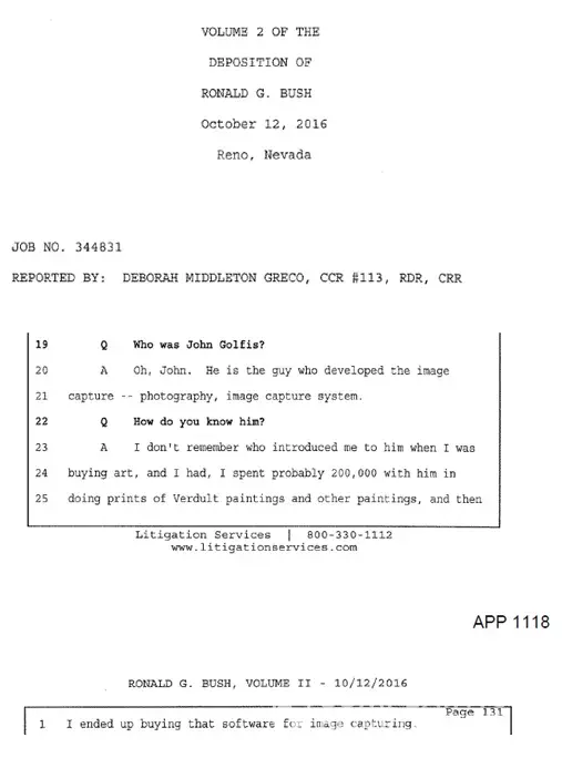 I found it very helpful to check the public court records in Nevada. Ronald G. Bush testified under sworn oath in depositions that are filed publicly concerning his business partnership with John Golfis and Artistic Transfer LLC and the image capture system. Mr. Bush testified that John Golfis developed the image capture system and there is no patent filed. The US Patent office indicates no patent has been filed by Mr. Golfis. Sworn testimony in Nevada contradicts the response posted by Artistic Transfer, LLC.