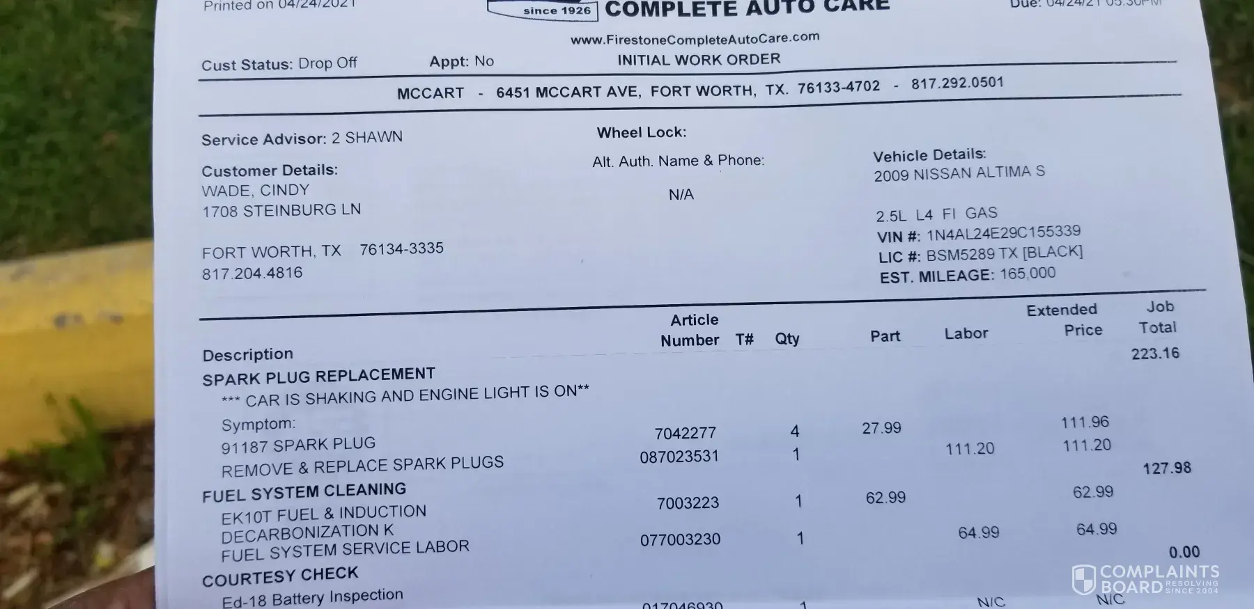 View all 636 complaintsFirestone Complete Auto Care - Service provided at 6451 Mccart Ave Fort Worth Tx 76134