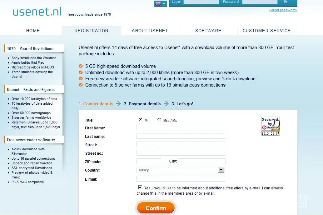 It is not our intention to give incorrect or untruthful information on our website or hide anything referring to the trial period or the contracts. If you had any problems with our service, if there is something you would like to mention or if you have any suggestions on how to improve the transparency on our website, please contact us at response@usenet.nl. We will gladly come back to you.