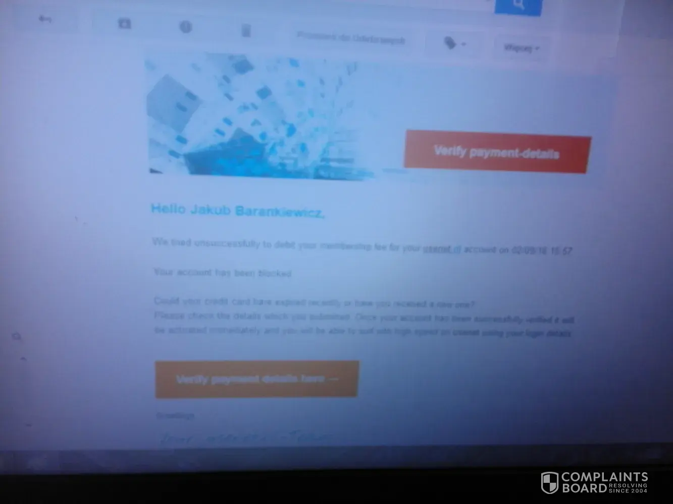 Verified customer This complaint was posted by a verified customer. Learn more