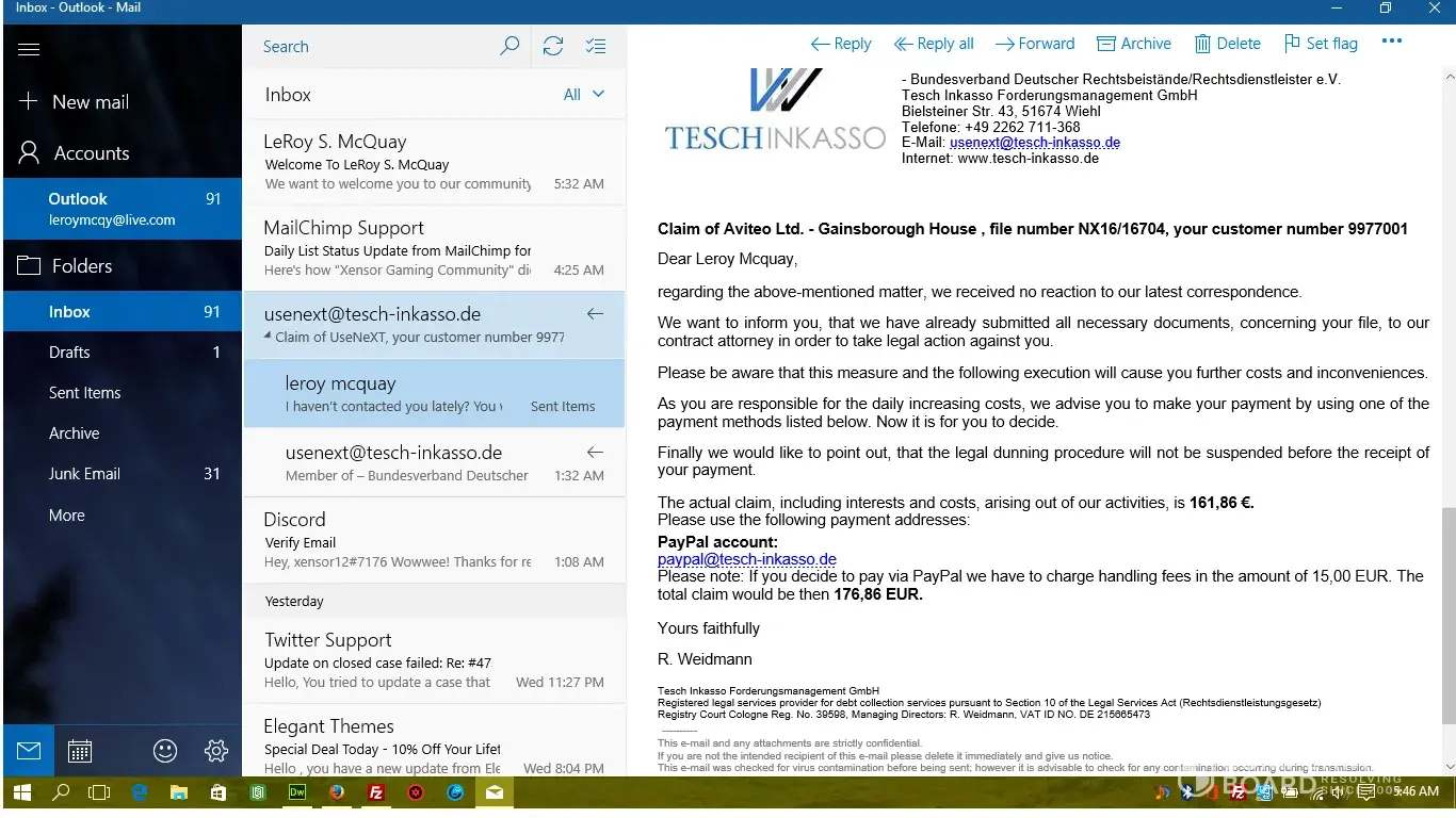 I do not know if this gets to anyone but I keep getting letters from AVITEO LTD and I have sent them back a email asking for Doc. of what this 160.78 EUR is for. I have not received anything and now getting letter from Teschinkasso part of lowell group (I guess a collection in Germany. Can someone make this stop? Who is this?