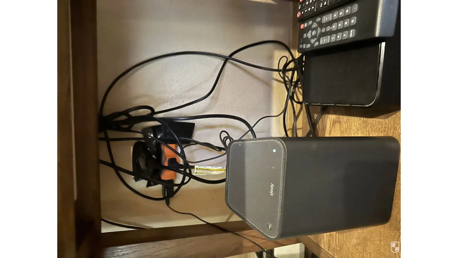 Black duct tape wrapped around electrical cords (fire hazard no doubt)