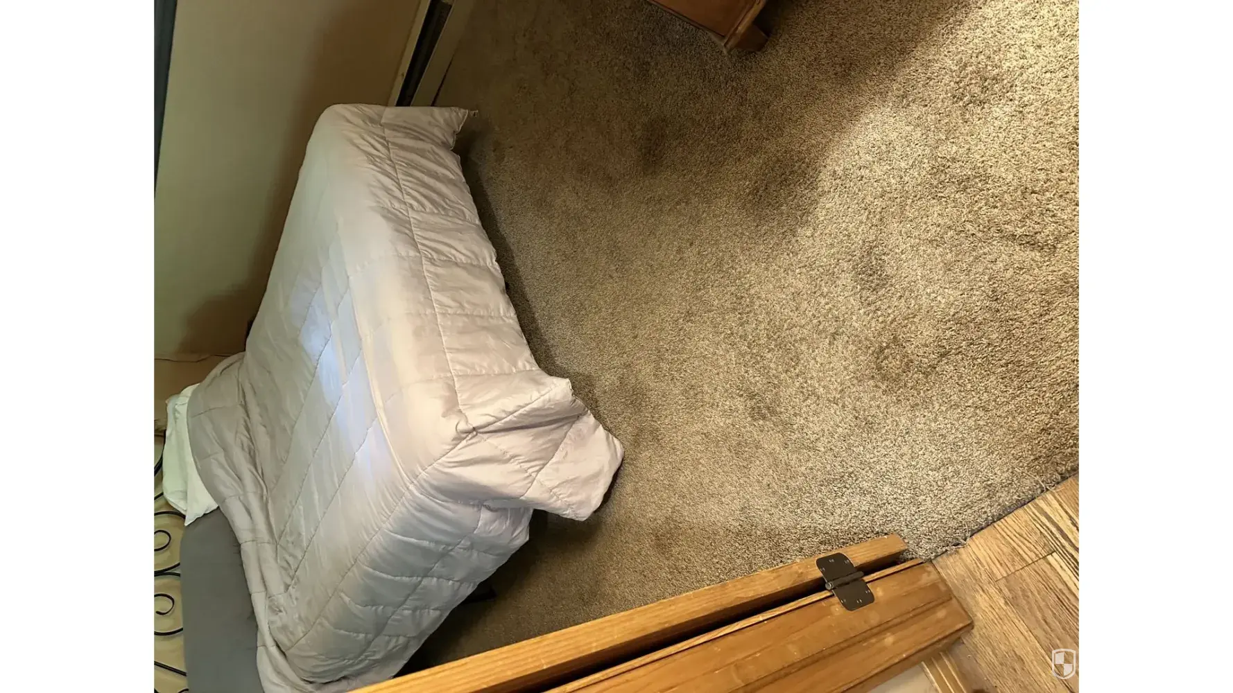 The wood floors and carpet are absolutely gross. Huge sign “take off your shoes†as I step on a tack strip.