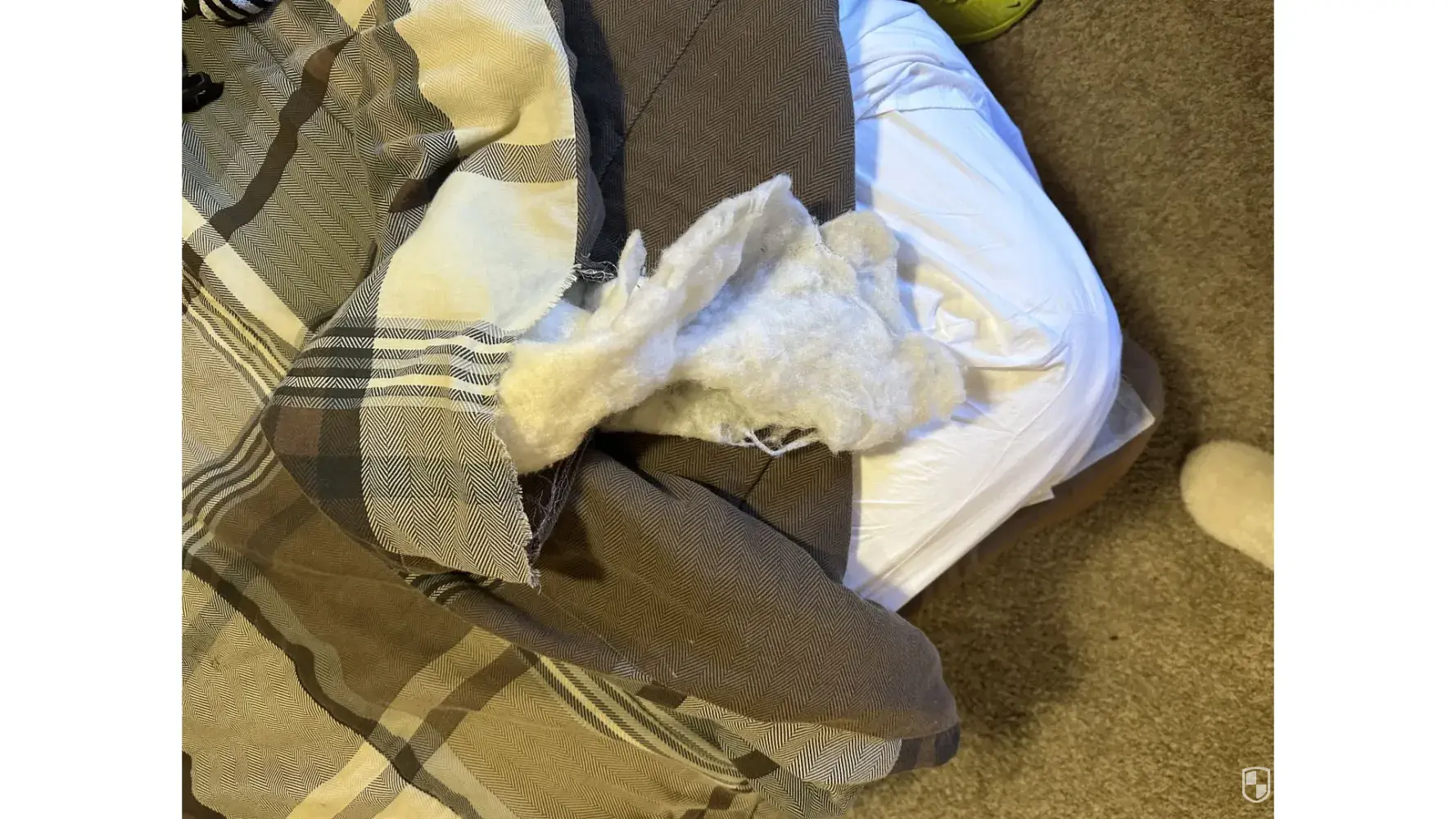 Main floor bedroom comforter has a huge tear in it and the stuffing inside is falling out.