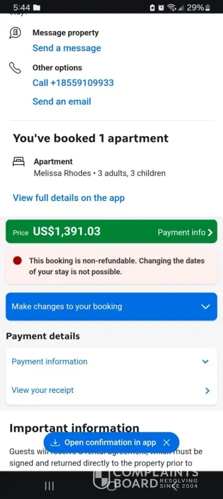 Was able to provide her the confirmation number. She said she would call the local property manager and would call me back. Needless to say it's been more than an hour and I'm still waiting for a call back. I guess we will need to book a hotel for tonight. I am beyond frustrated!