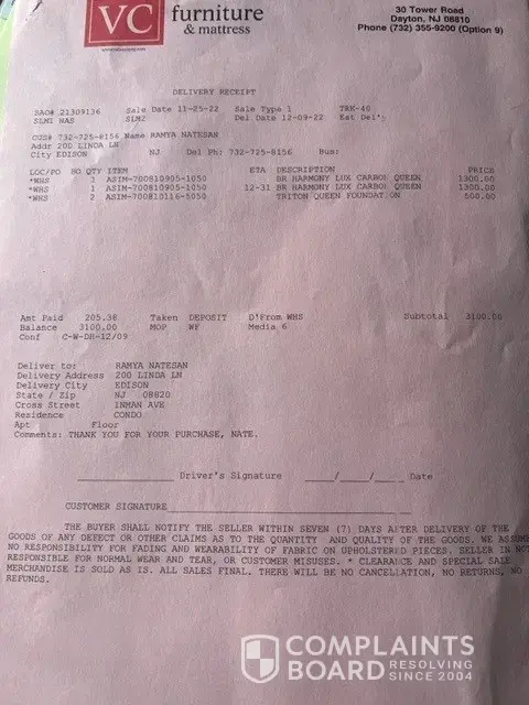 I would like to contact VCF corporate office to speak to the CEO regarding one of their MD stores selling used ( a bed) and damage furniture. Damages are from the manufacturer itself and being sold as Quality furniture when in fact dresser draws do not close, they’re incorrect cuts in the wood, beveled wood, and much more then that and it’s just painted...