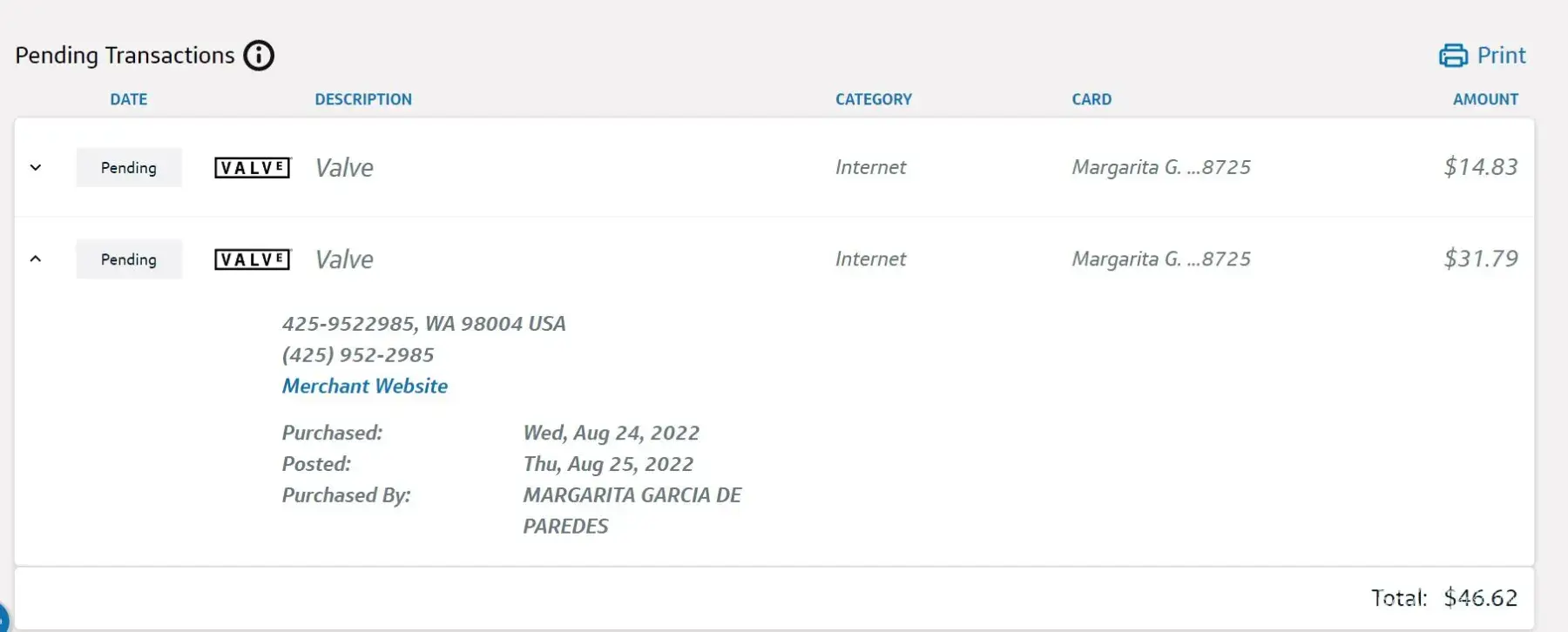 I'm am writing a complaint about this valve steam purchase charged in my credit card account. That is made in Canada but is processed in foreign or international countries. I didn't know anything about this valve or what is that steam purchase that charged my credit card account four times about 20 hrs. ago. And also there steamgames.com 4259522 charged my credit card last February 14, 2022, $27.29. And there is some valve steam purchase they charge me like $75.00. And I don't remember that I have created or subscribed to any online games or downloaded them. Please I want my money back and I don't like any charges on my credit card in the future. Thank you.
