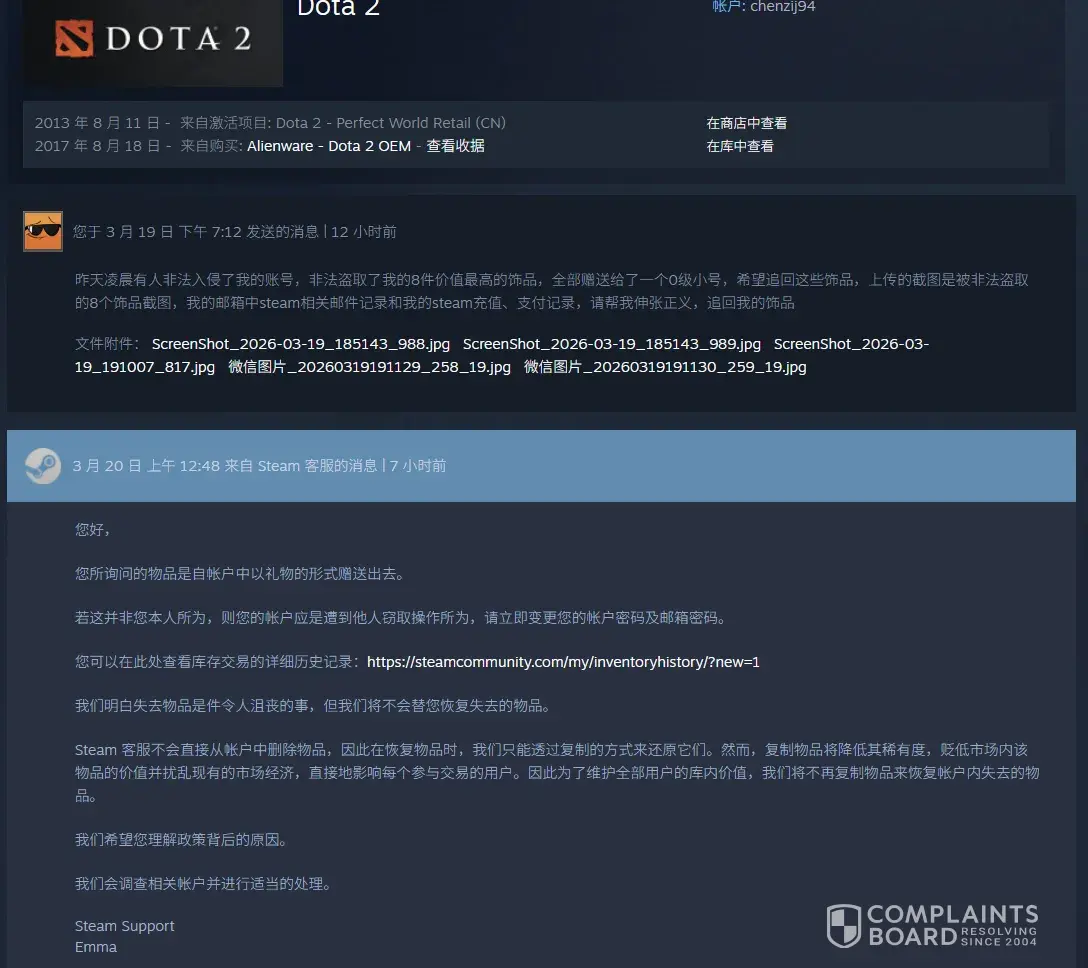 Consider the enclosed evidence of poor customer service from Steam Support.