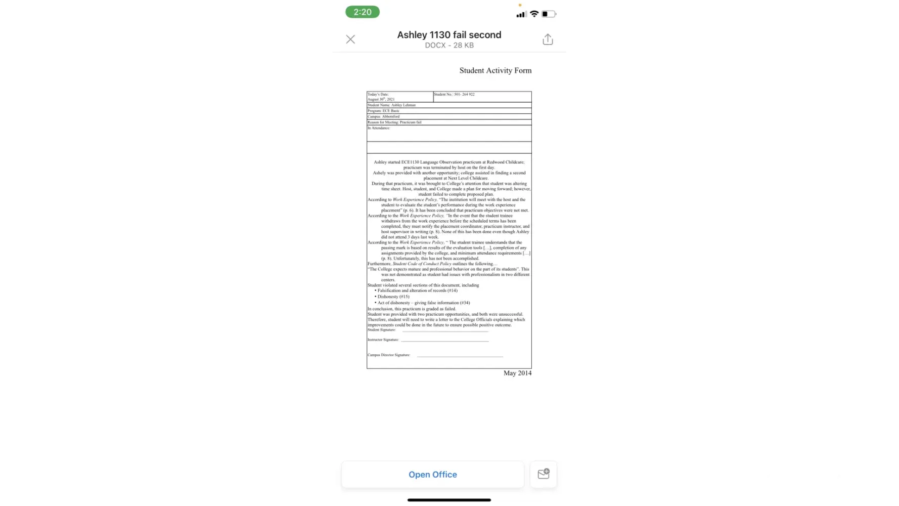 Desired outcome: i would like a apology from the staffs and i would to finish my practicum